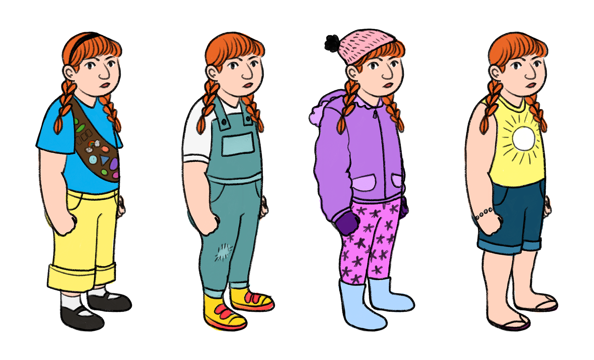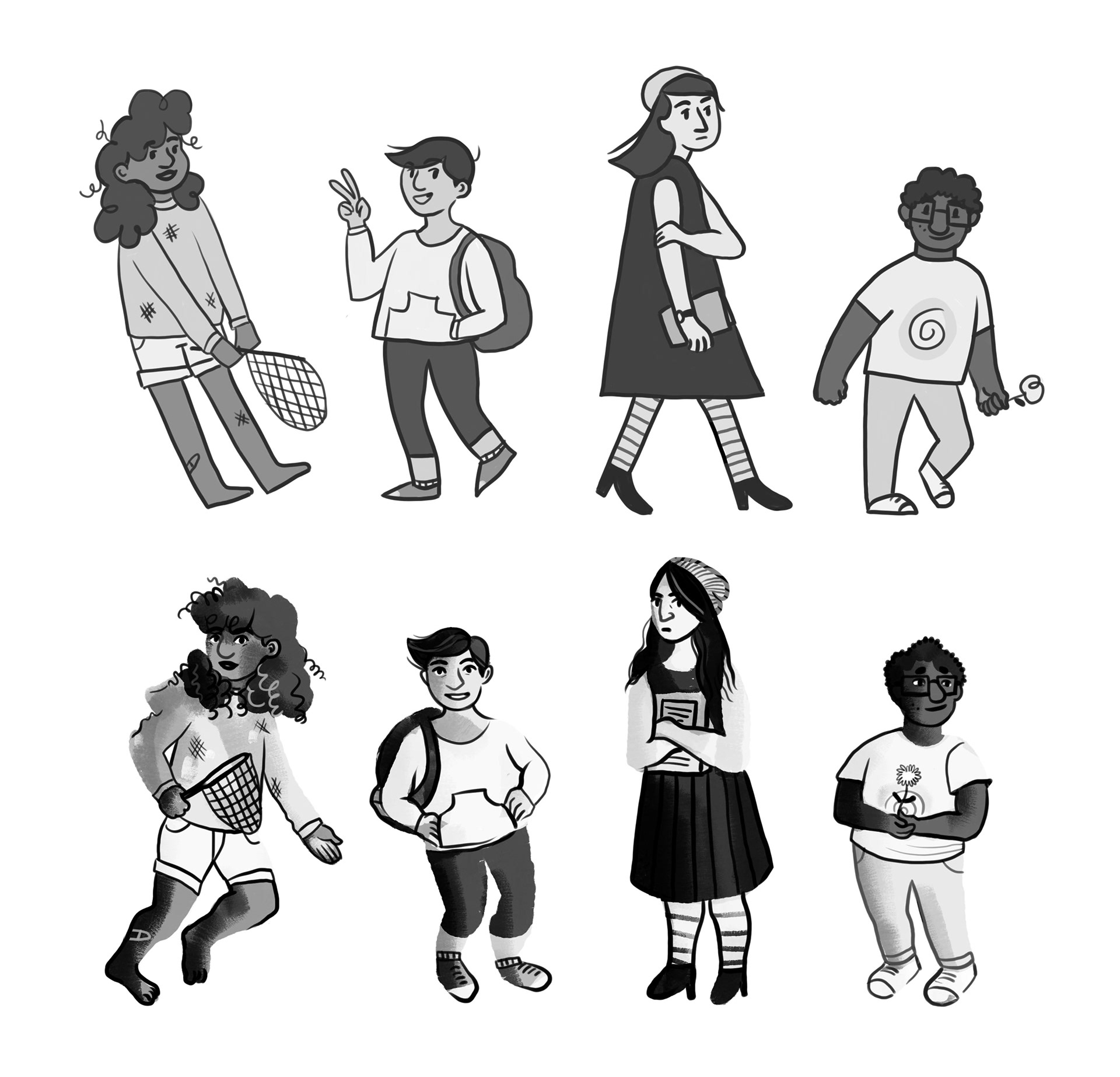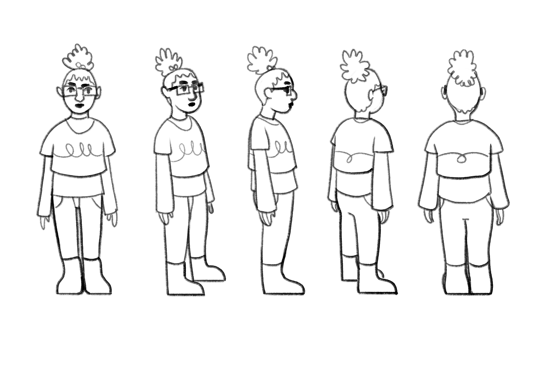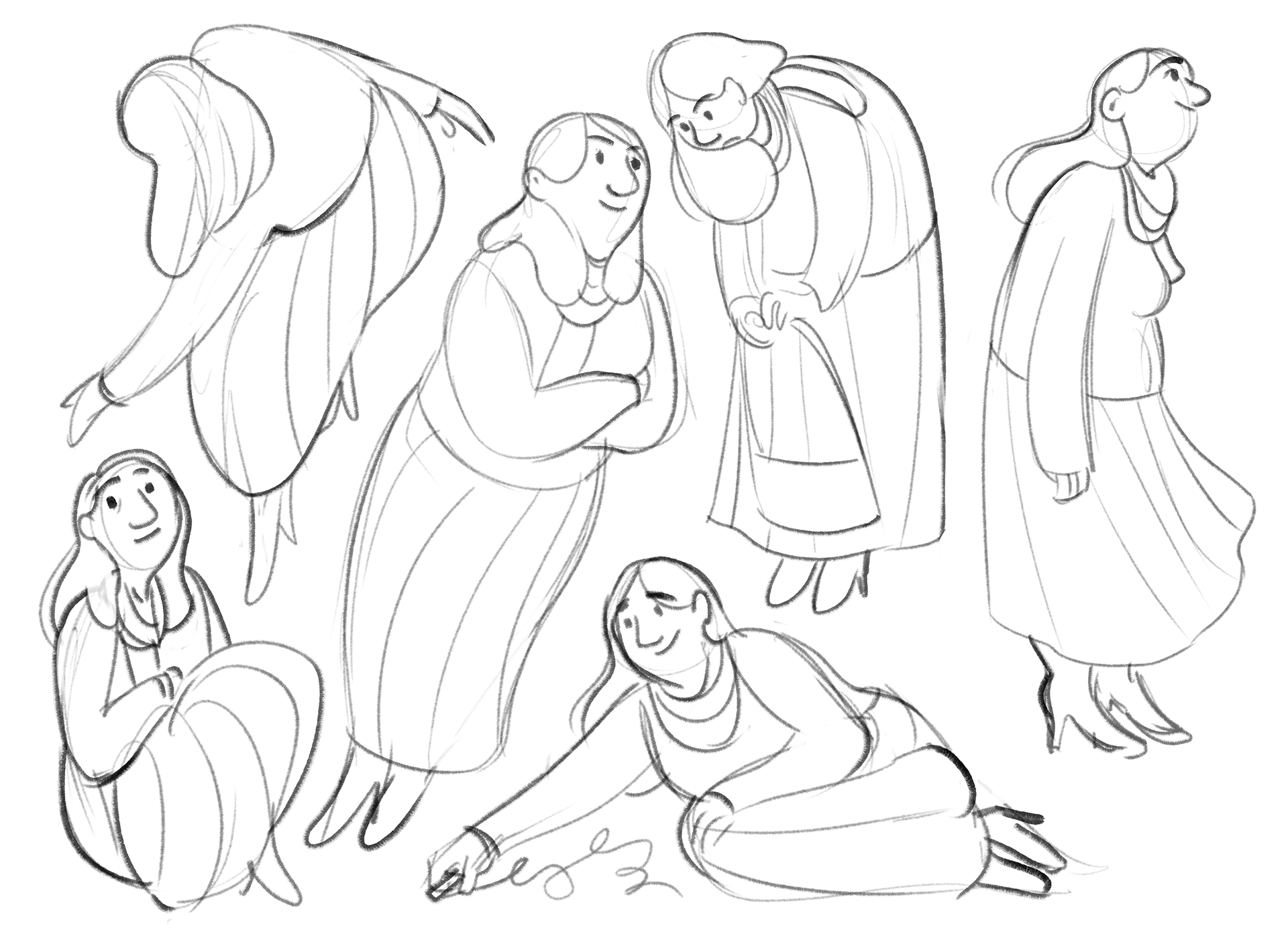 This group of sketches and illustrations were created to explore different aspects of character creation and design: including expressions, turnarounds, outfits, and characters in different life stages.