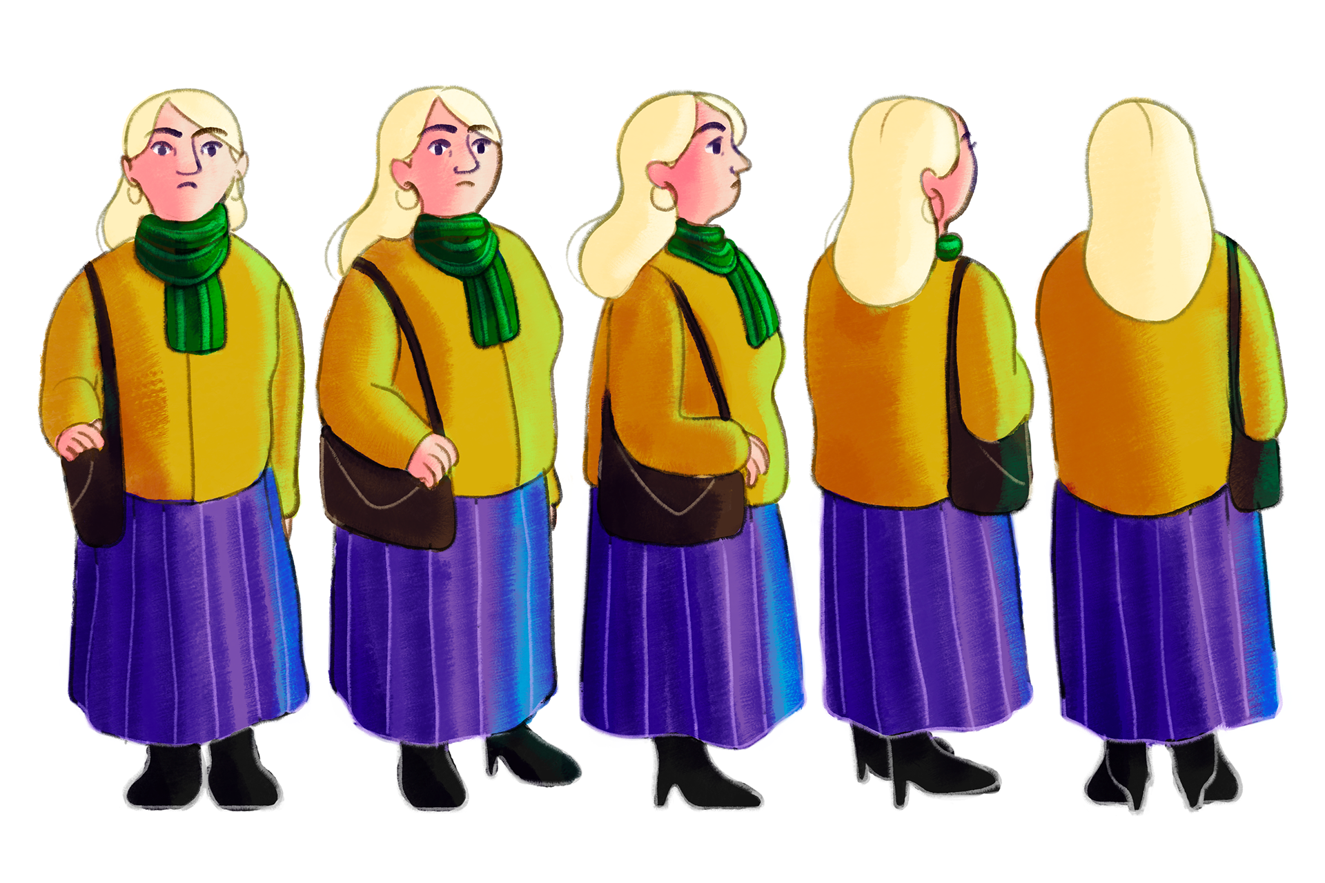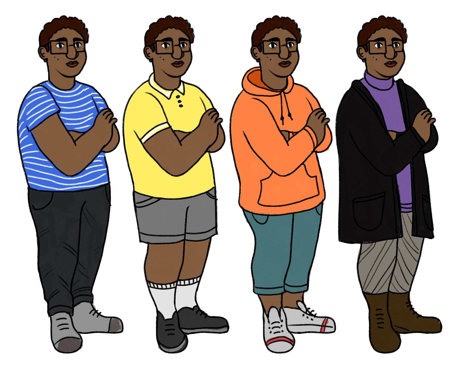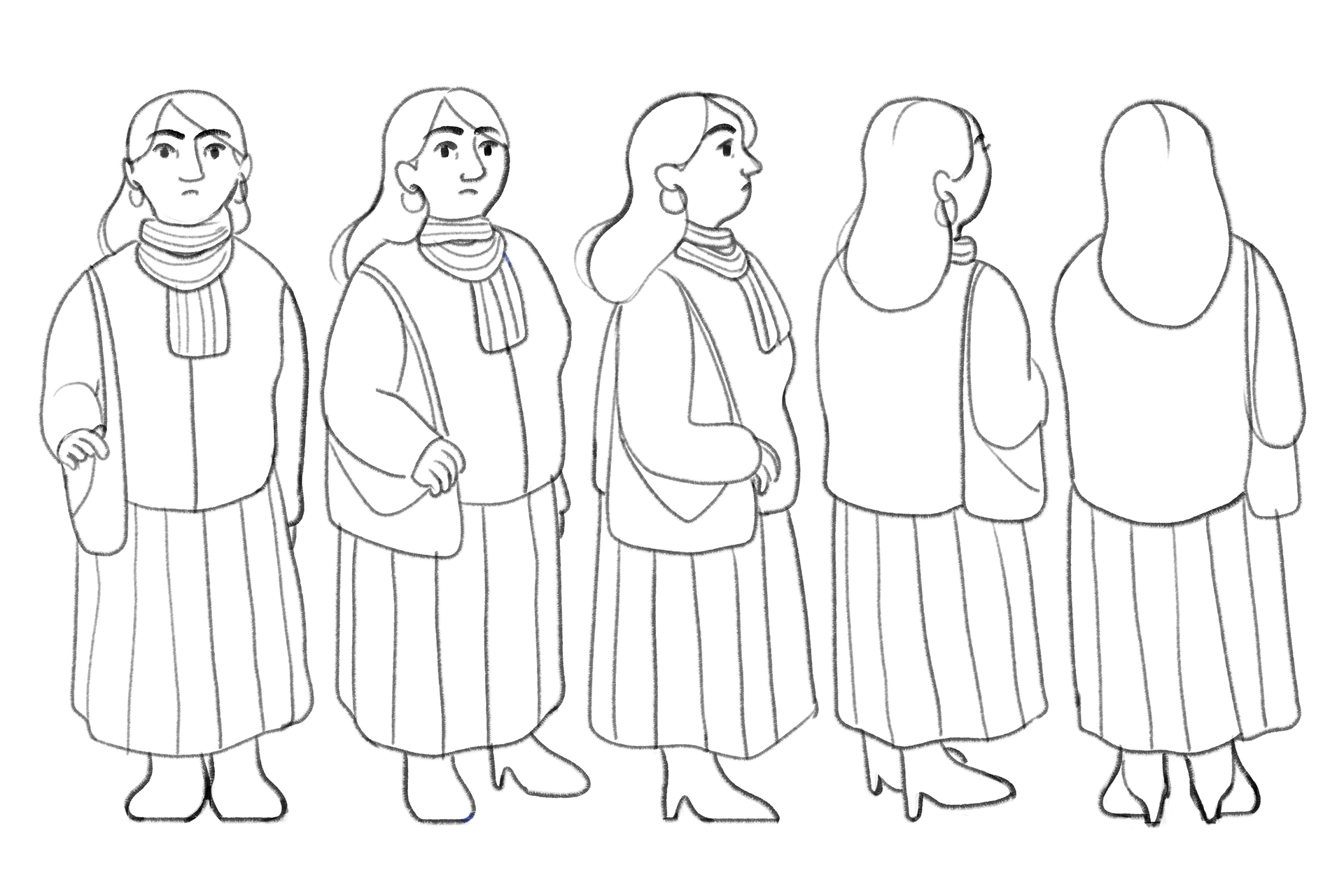 This group of sketches and illustrations were created to explore different aspects of character creation and design: including expressions, turnarounds, outfits, and characters in different life stages.