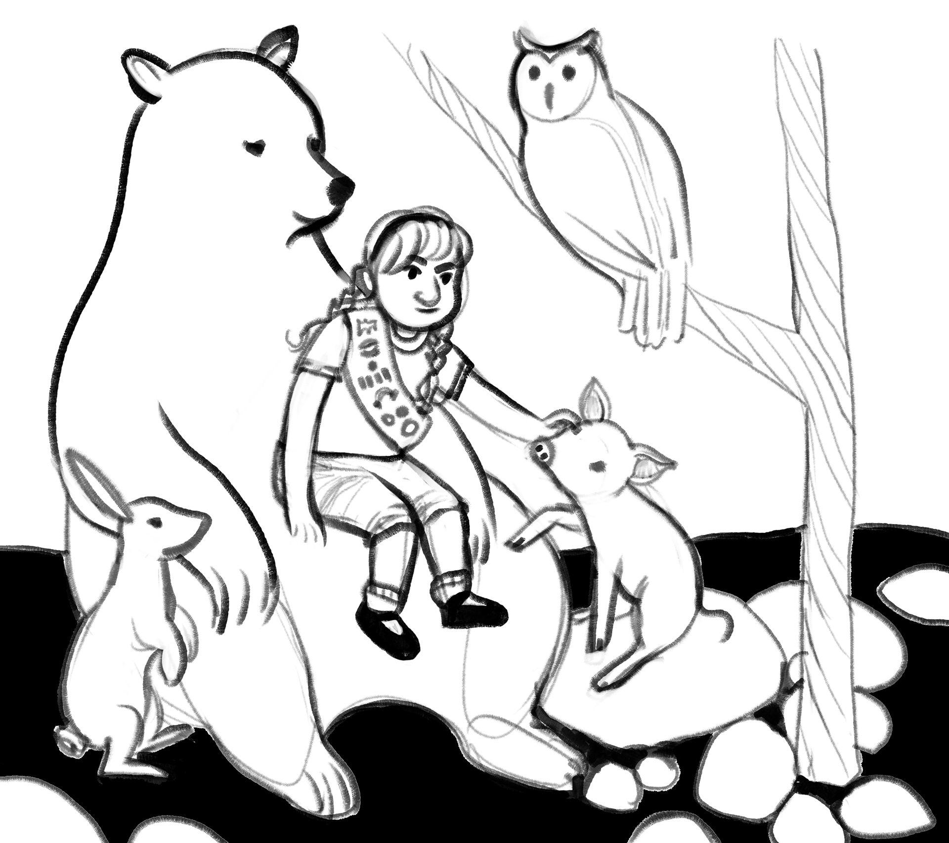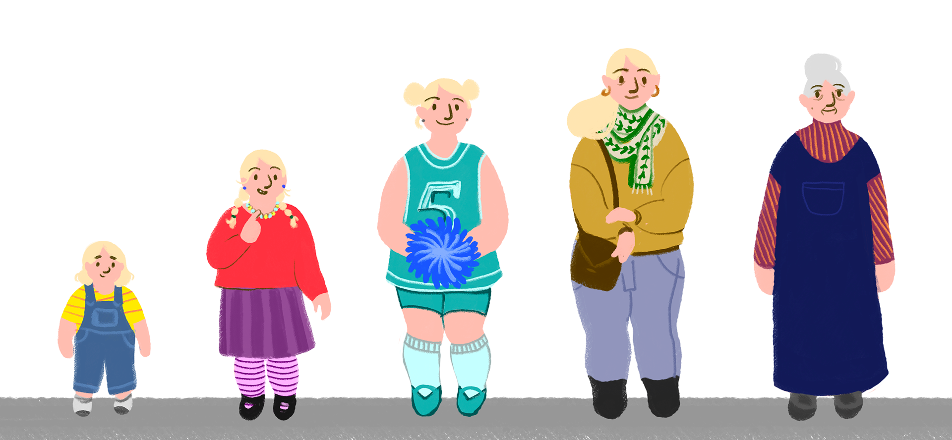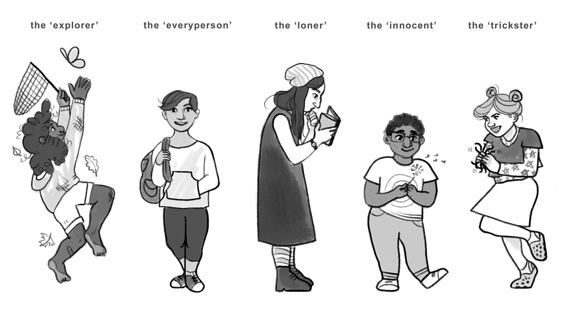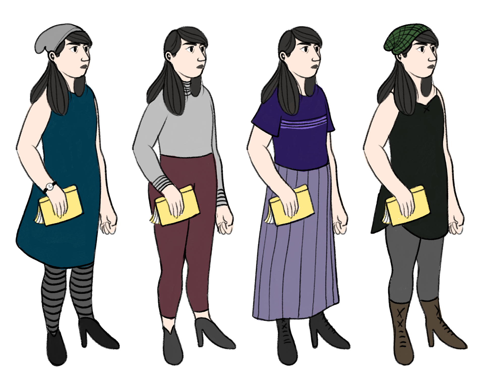 This group of sketches and illustrations were created to explore different aspects of character creation and design: including expressions, turnarounds, outfits, and characters in different life stages.